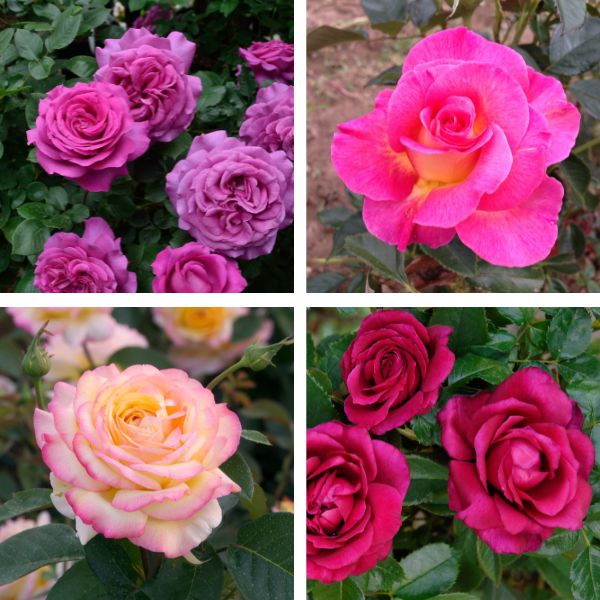Vous avez le choix entre le lot de 4 rosiers (un de chaque variété) ou le lot de 8 rosiers (2 de chaque variété).